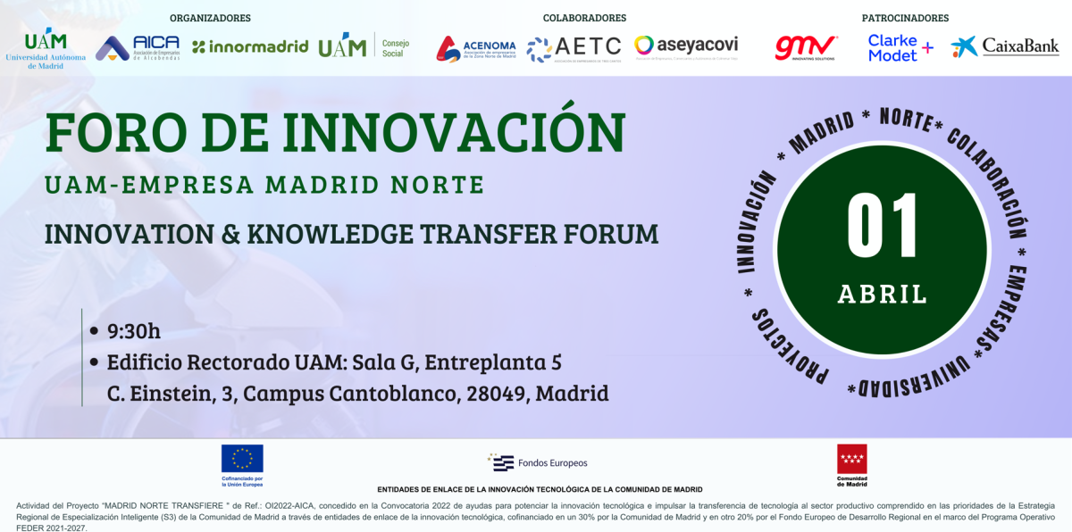 Te invitamos al Foro de Innovación UAM-Empresa Madrid Norte, que celebramos el próximo 1 de abril a las 9:30 en la Universidad Autónoma de Madrid.